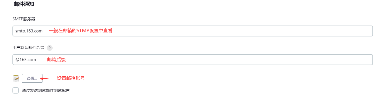 进入系统管理 - 系统配置,邮件通知-高级中设置邮件信息