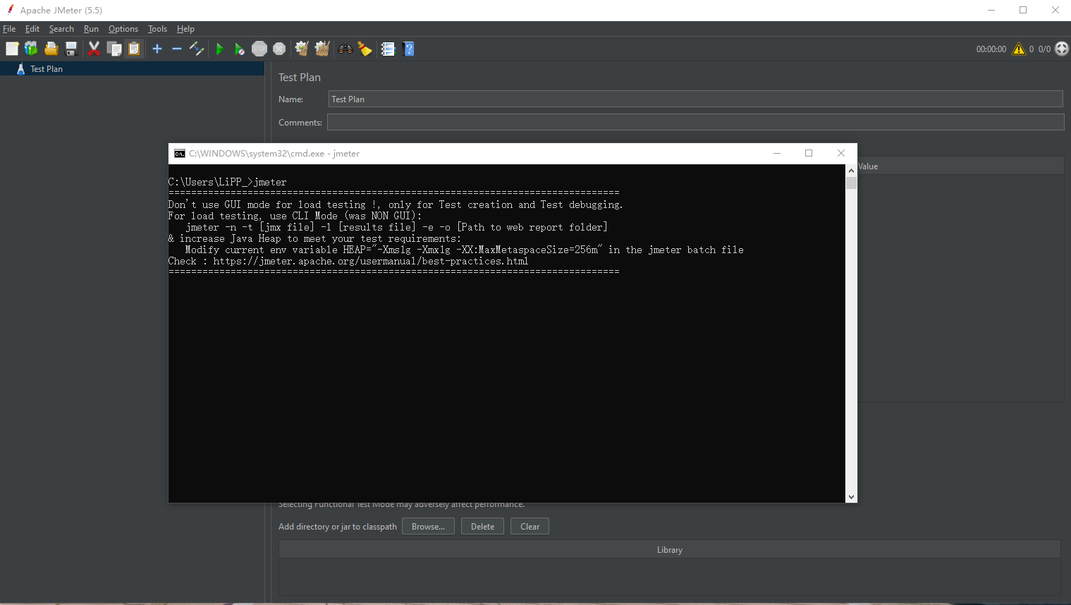 添加环境变量后,重新打开cmd,输入jmeter,能成功打开jmeter界面则配置成功