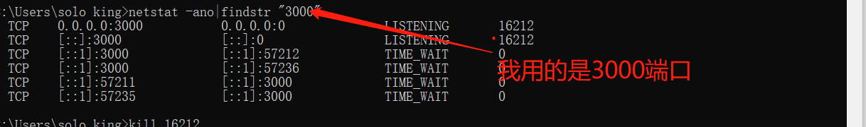 查到进程ID为16212的应用占用了端口,