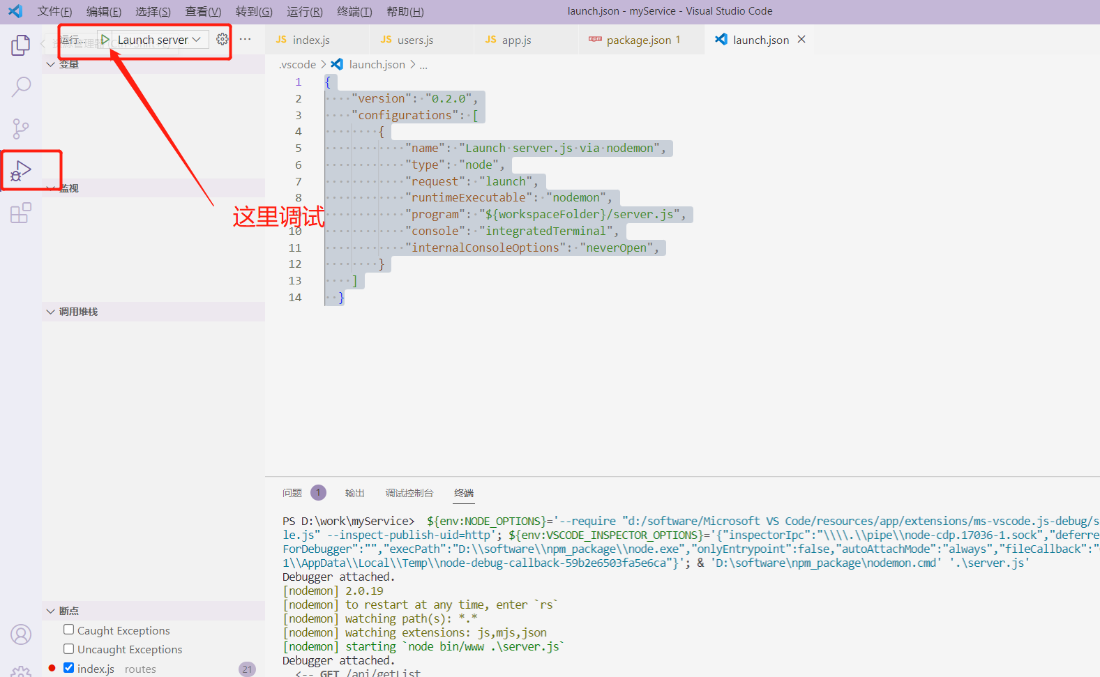 nodemon在VSCODE中 调试nodeJS的使用方法