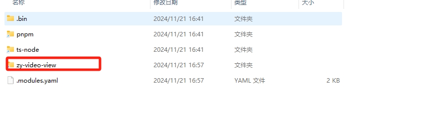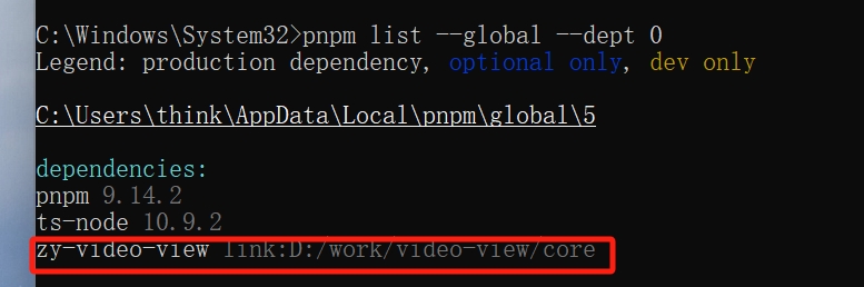 如果上述link插件包以后,到使用包的目录下,运行 pnpm link zy-video-view --global,就会在 node_modules看到这个插件包的目录,package.json 不存在这个插件包的声明,但是不妨碍用