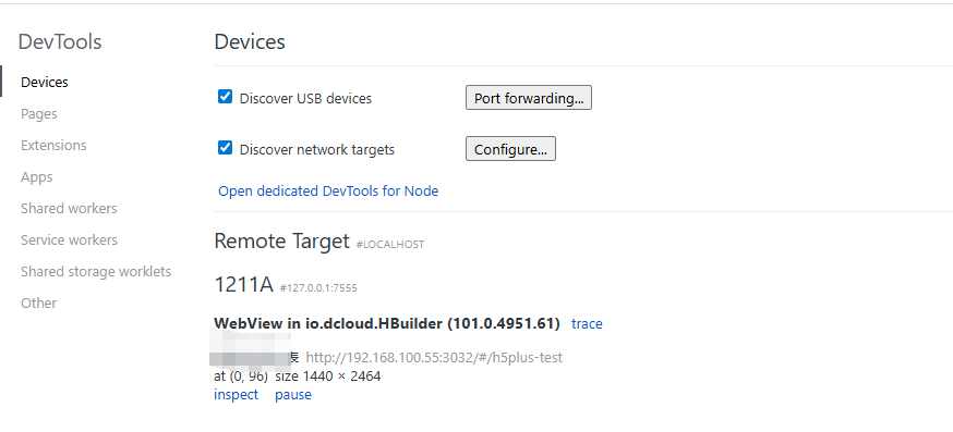 4.最后说明一下,如果模拟器没有太多反应,可以通过谷歌的chrome://inspect/#devices打开如图所示界面去查看问题