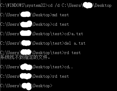 #切换目录:cd(change directory),通过/d参数可以实现跨盘符切换,如cd /d E:\我的图片+回车