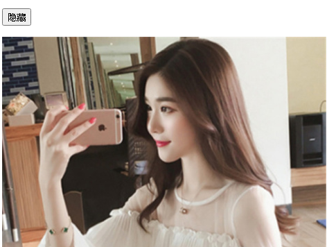 1 <div> 2 <p> 3 <button id="comm">隐藏</button> 4 </p> 5 <p> 6 <img id="pic" src="images/img01.jpg"> 7 </p> 8 </div> 9 <script type="text/javascript"> 10 var commNode = document.getElementById('comm'); 11 var imgNode = document.getElementById('pic'); 12 var isDisplay = 1; 13 commNode.onclick = function () { 14 if(isDisplay===1){ 15 imgNode.style.display = 'none'; 16 commNode.innerText = '显示'; 17 isDisplay = 0; 18 }else{ 19 imgNode.style.display = 'block'; 20 commNode.innerText = '隐藏'; 21 isDisplay = 1; 22 } 23 } 24 </script>