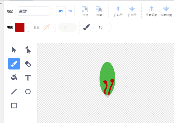 3.开始手动绘制造型,先选择圆,填充颜色选择绿色,把轮廓取消.,在图形编辑区域,画出一个椭圆.