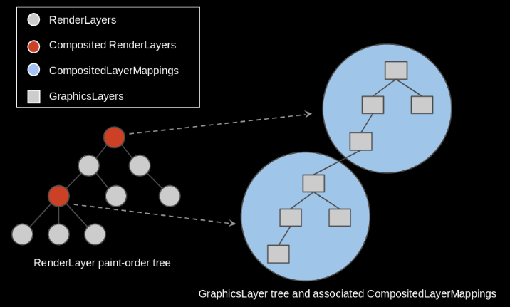 原则上,Render Layer Tree中的每个Render Layer都相应有一个Composited Layer Mapping,每个Composited Layer Mapping又包括有若干个Graphics Layer。