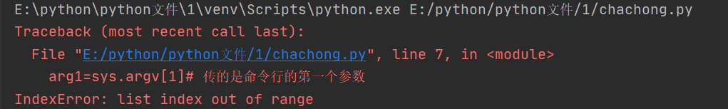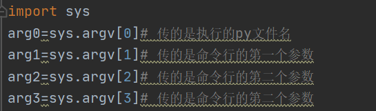 python使用的命令行参数是argv函数,按照python main.py [参数1] [参数2] [参数3]的格式,可以接受命令行参数,不过有一点需要注意的是诸如pycharm等IDE无法编译通过该部分,会产生下列错误