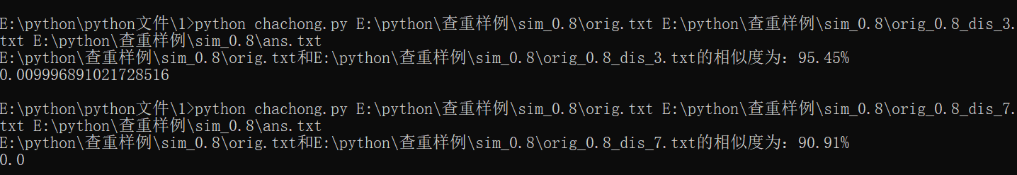 这个是临时输入测试的结果,上面两行分别是需要比较的文件1和2,第三行则是答案写入的文件,第四行为测试结果