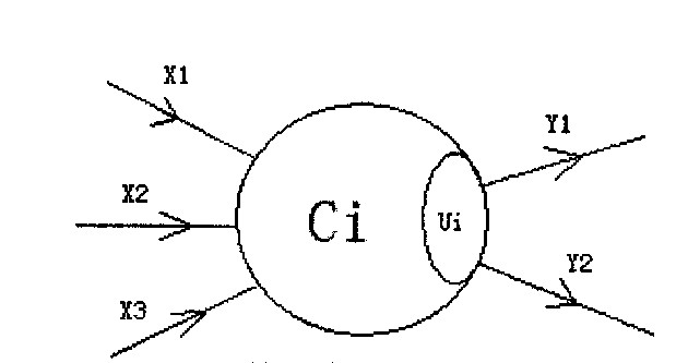 图中,X1―X3是信息输入渠道,Y1-Y2是信息输出渠道,C1表示神经元目前的状态,