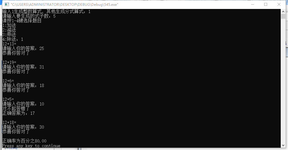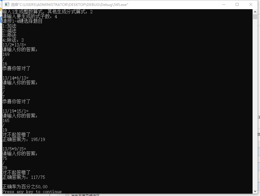 | 这个作业的目标 | 能够有选择的自动生成四则运算并判断正误以及正确率 |