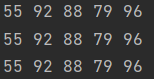 1 #列表遍历 2 lst = [55, 92, 88, 79, 96] 3 4 #1.while+索引 5 i = 0 6 while i < len(lst): 7 print(lst[i], end=' ') 8 i += 1 9 print() 10 11 #2.for+索引 12 for i in range(len(lst)): 13 print(lst[i], end=' ') 14 print() 15 16 #3.for...in 17 for i in lst: 18 print(i, end=' ')