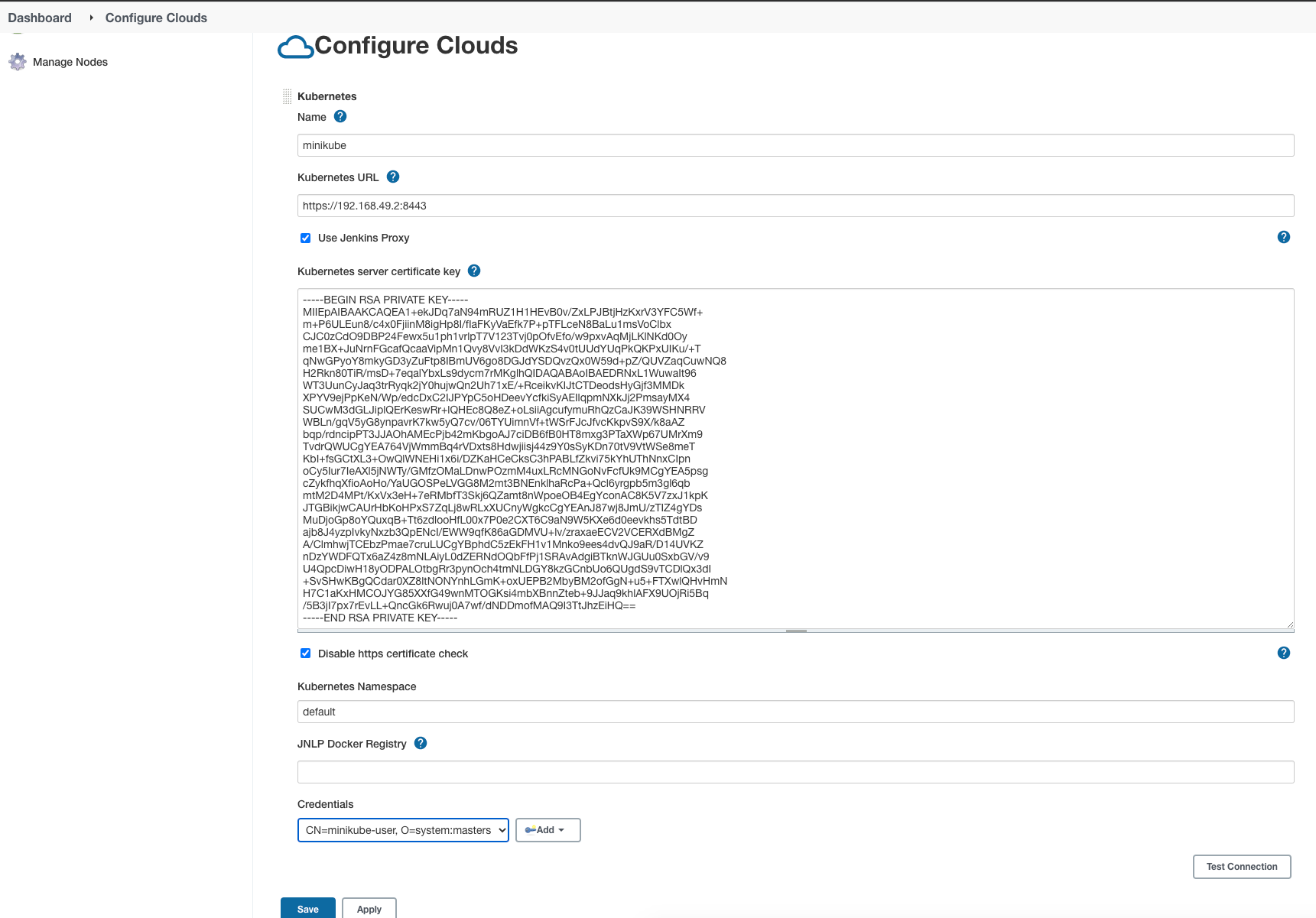 Manage Jenkins --> manage Nodes and Clouds --> Configure Clouds