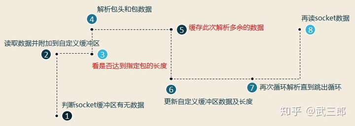 通过上面的代码,我们可以看到,对于socket接收的数据包,关键在于合理地进行拆包,其拆包过程可以总结如下图: