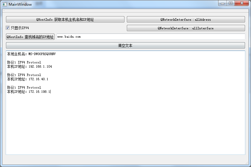 QHostInfo hostinfo = QHostInfo::fromName(hostname); //本机IP