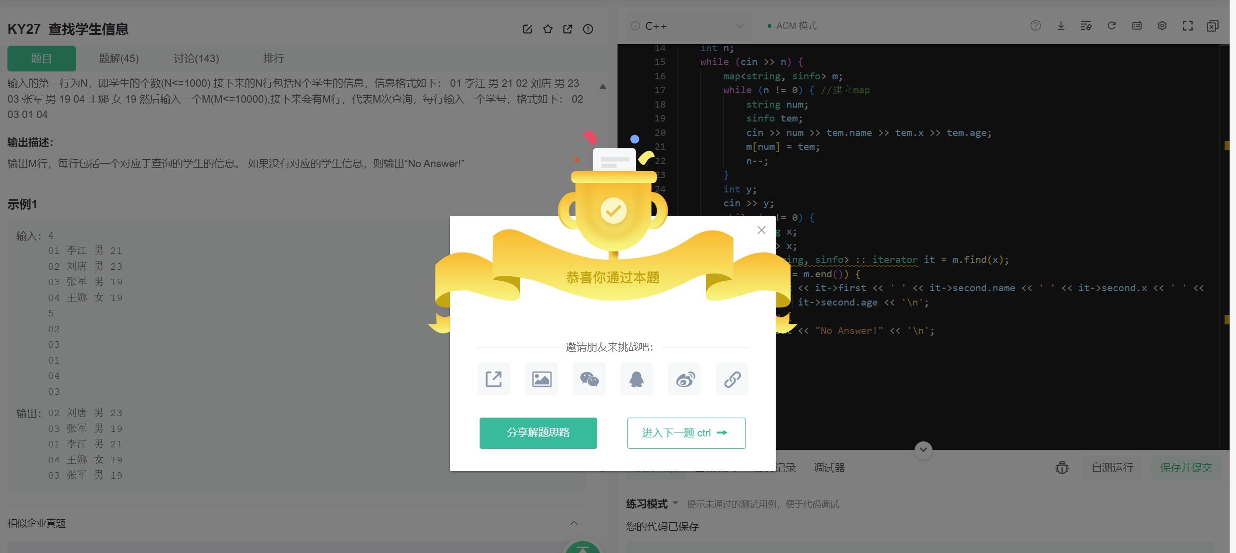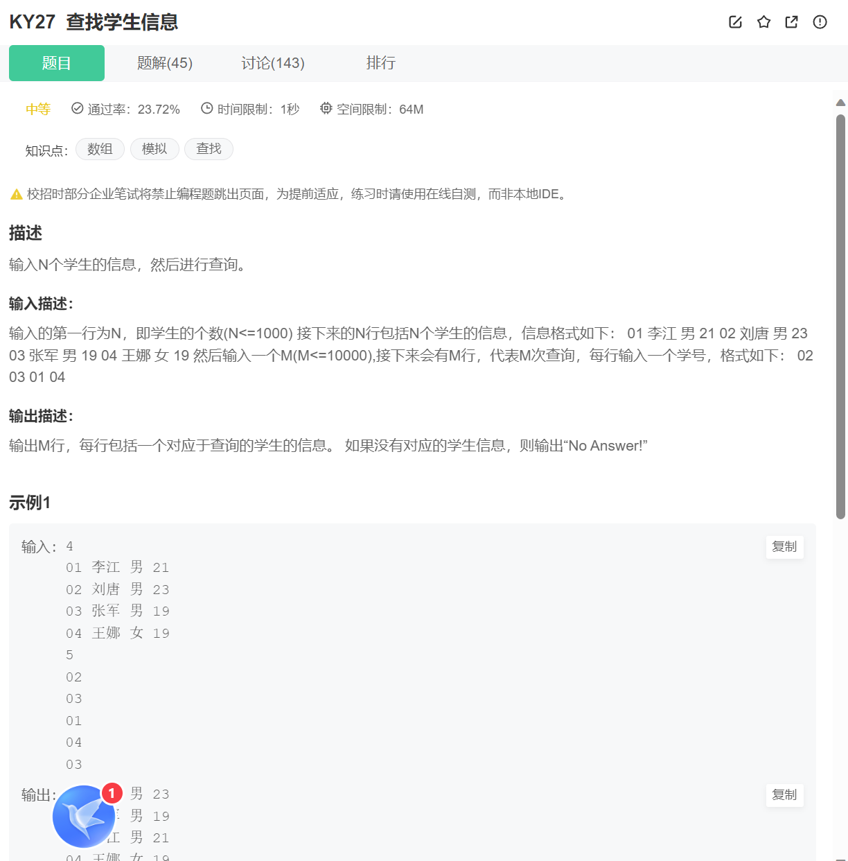 KY27 查找学生信息C++