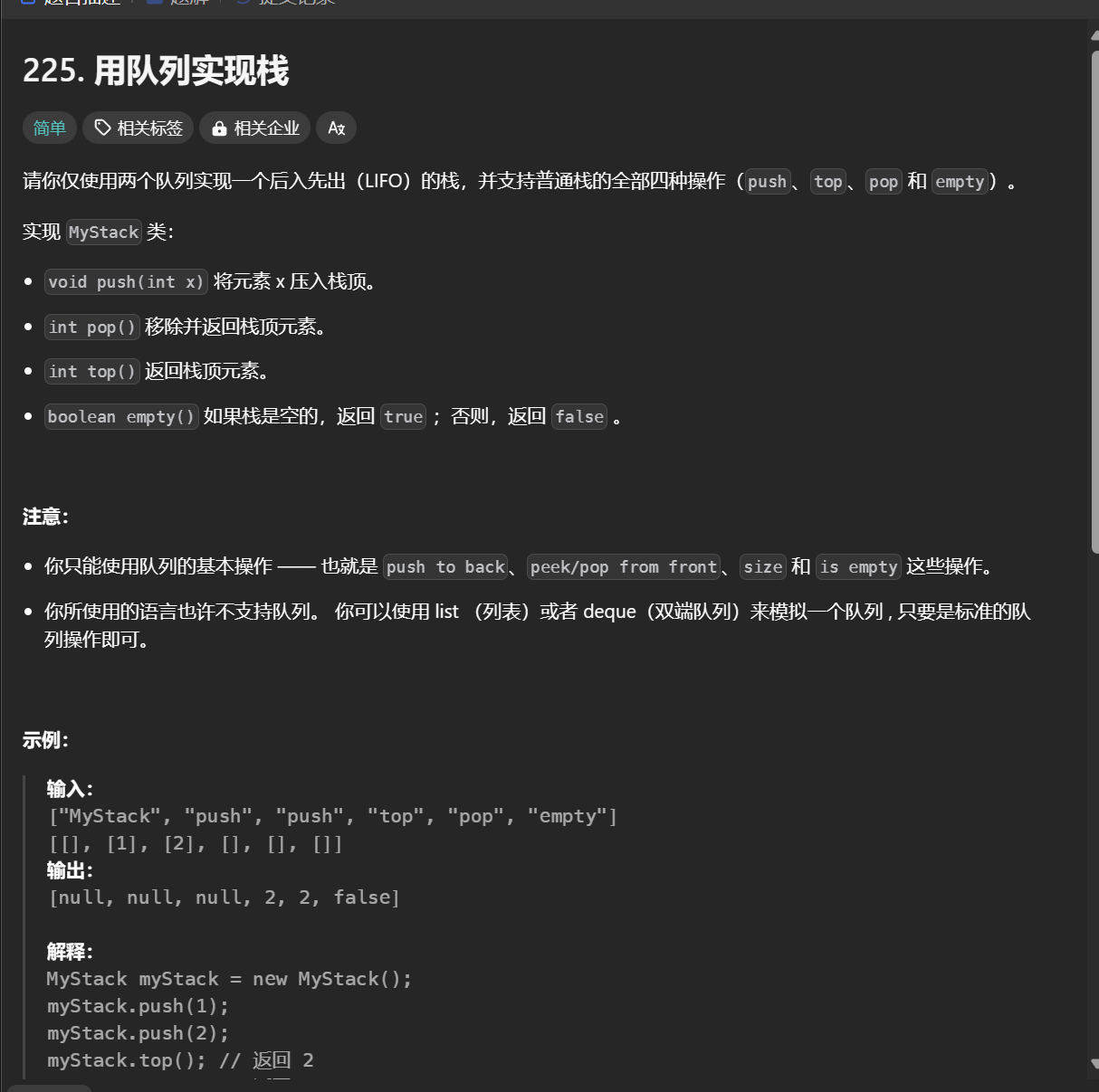 225. 用队列实现栈 c