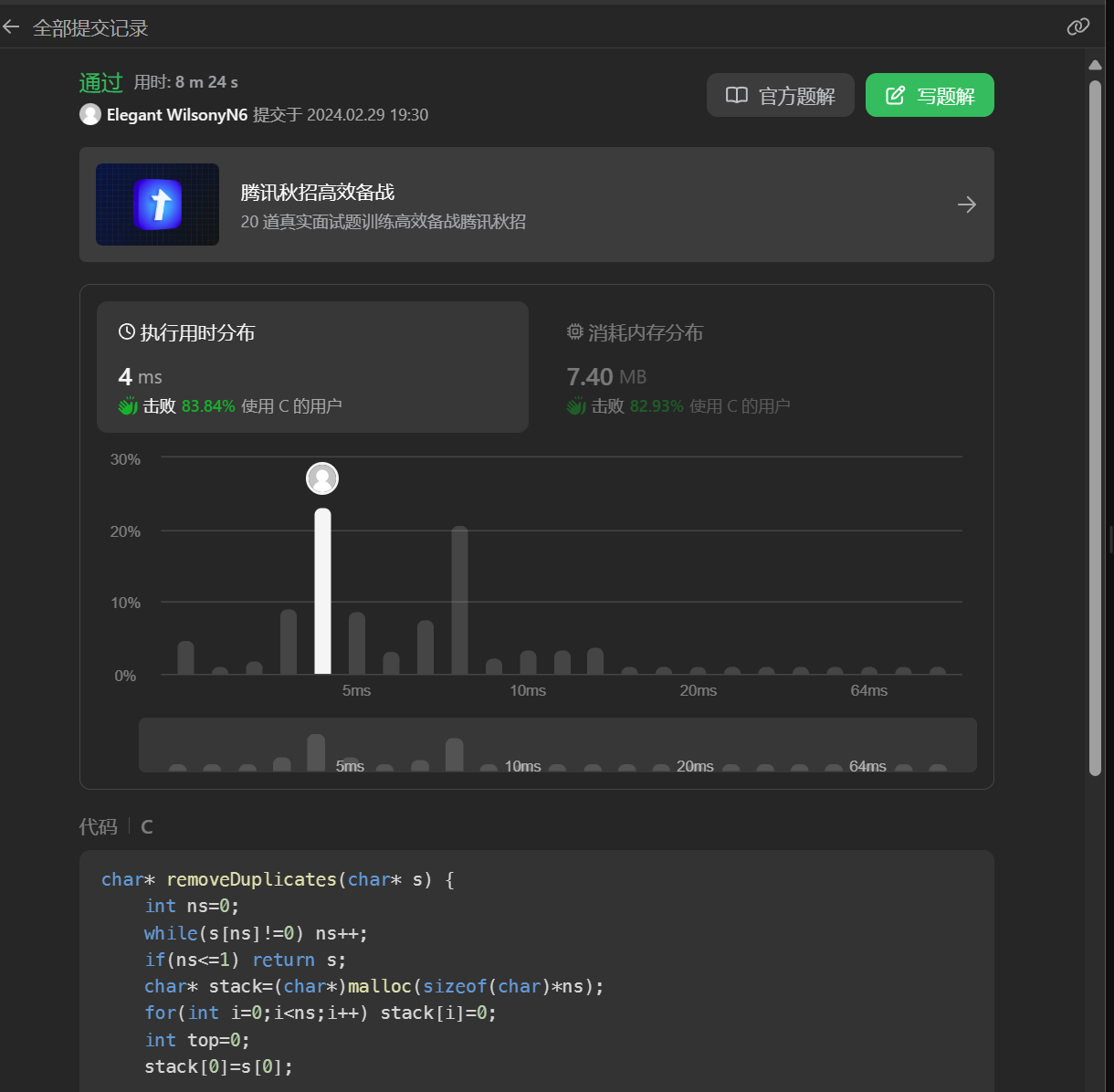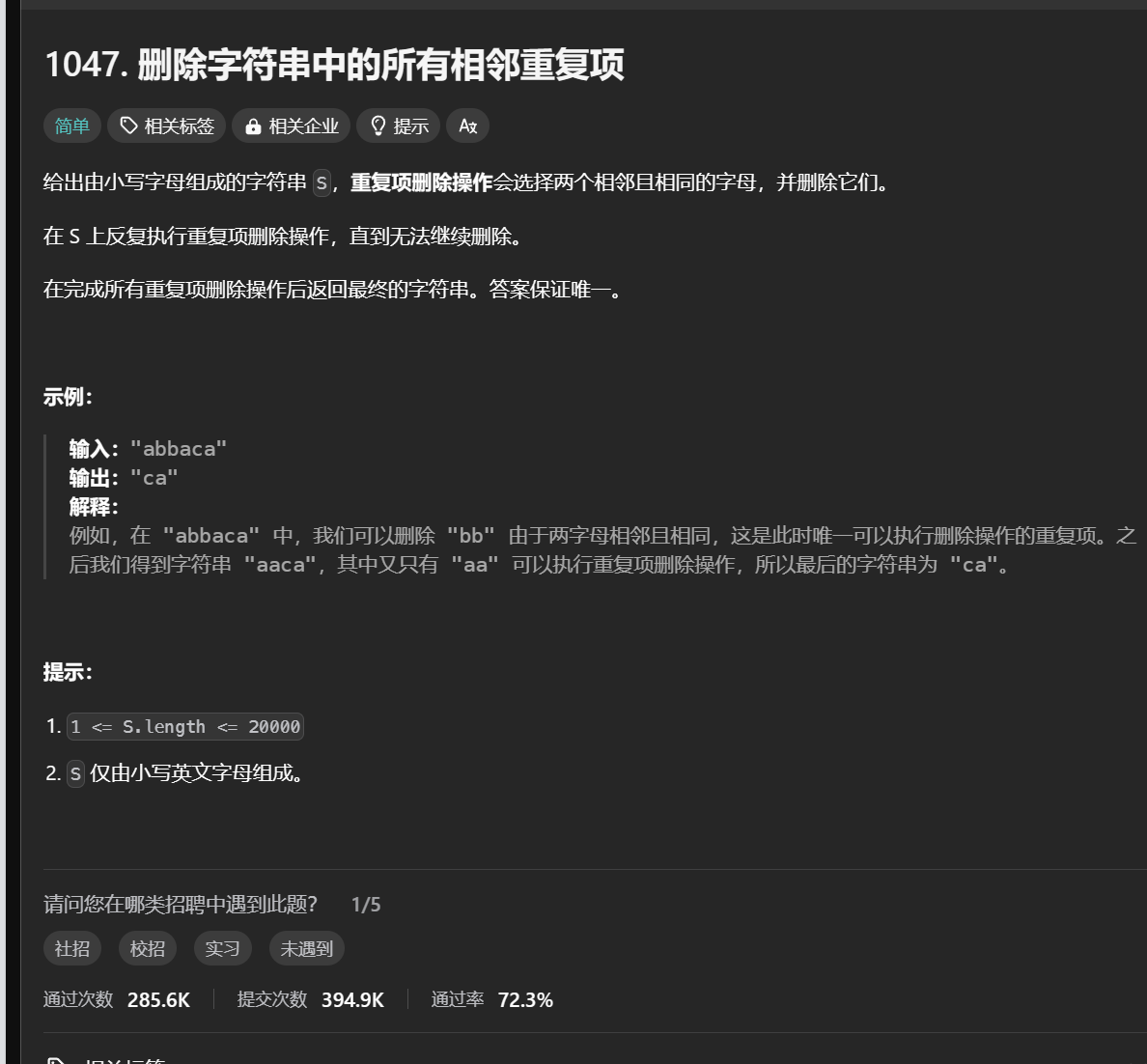 1047. 删除字符串中的所有相邻重复项 c