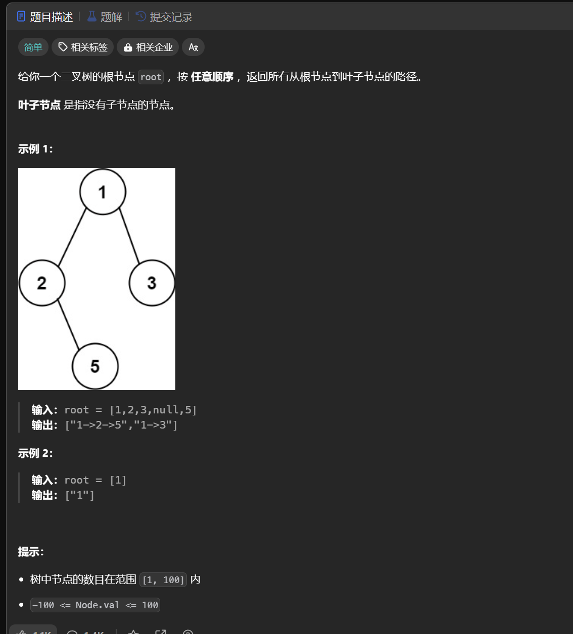 char** binaryTreePaths(struct TreeNode* root, int* returnSize) {