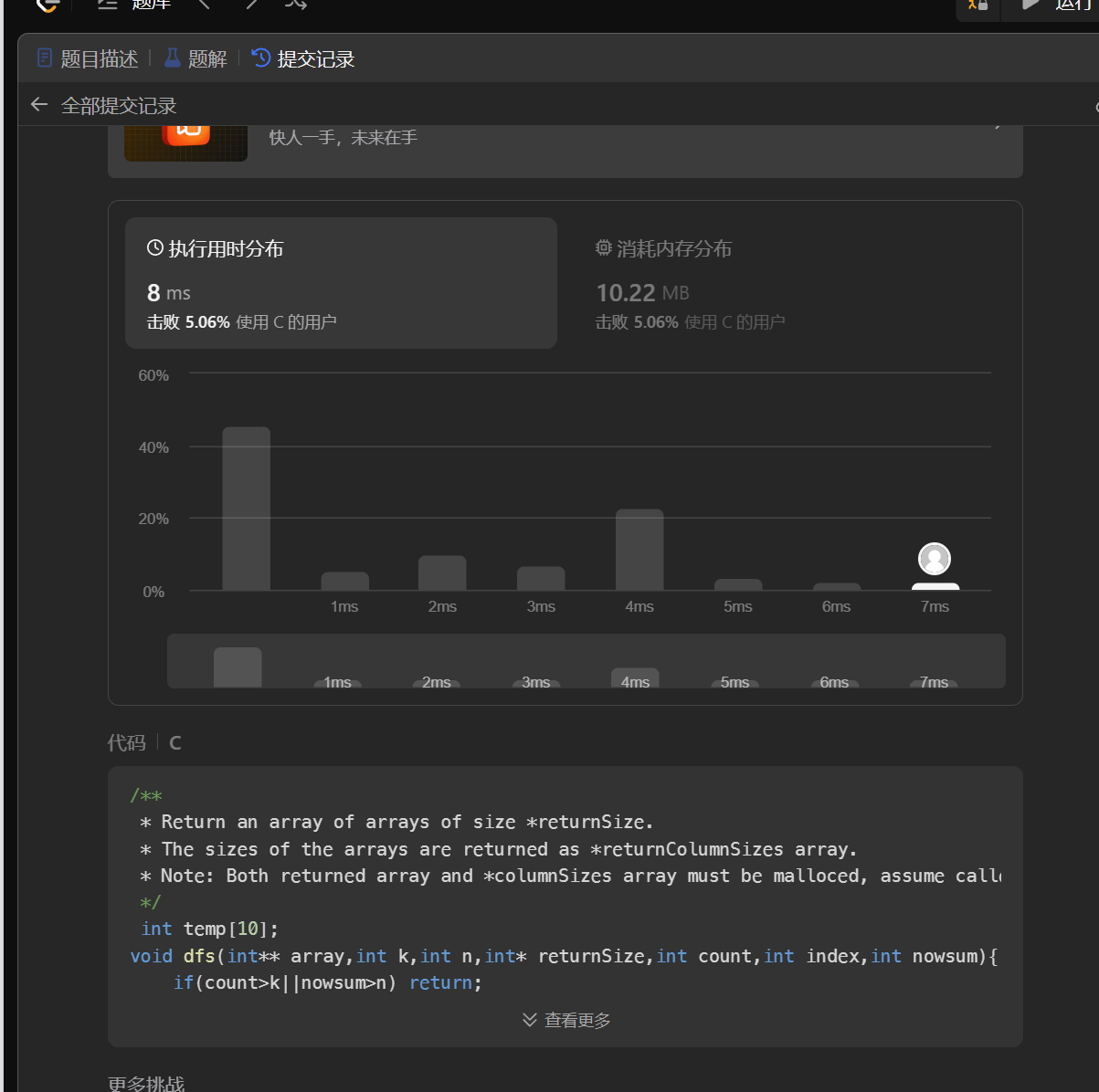 dfs(array,k,n,returnSize,count+1,i+1,nowsum+i);