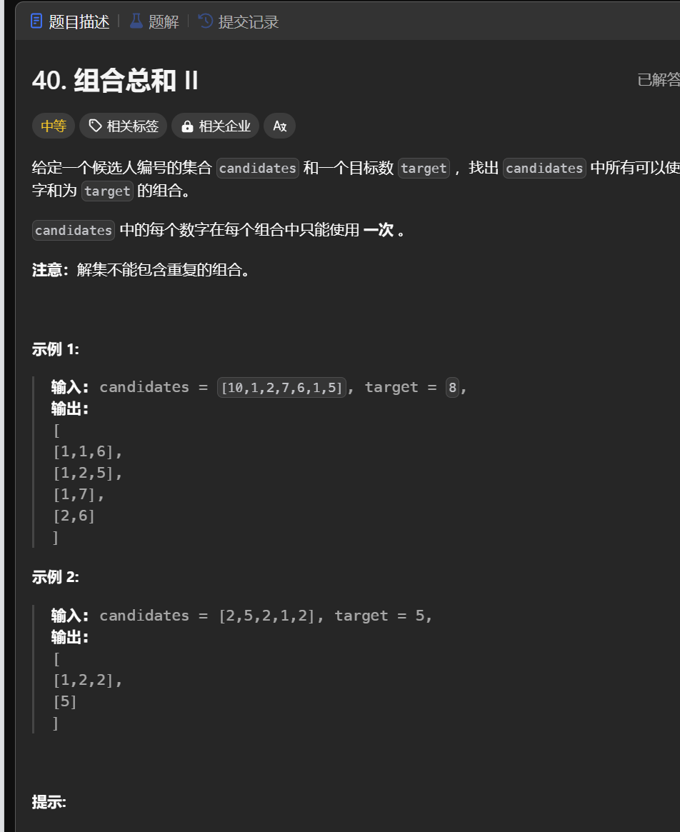 if(i!=0&&candidates[i]==candidates[i-1]&&visit[i-1]==0) continue;
