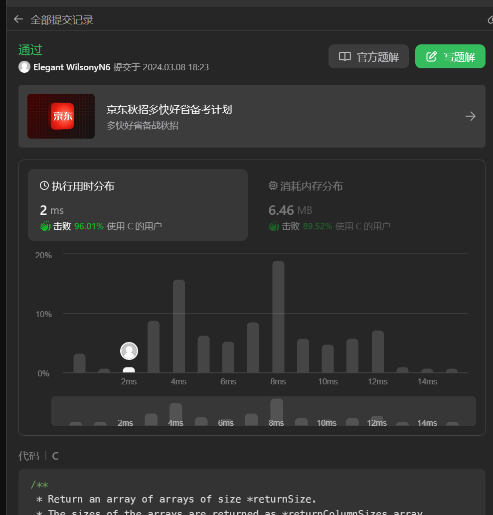 array[*returnSize]=(int*)malloc(sizeof(int)*n);