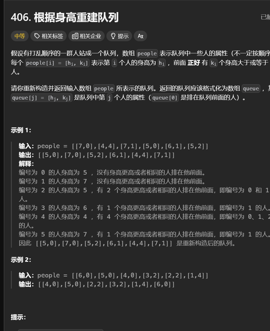 406. 根据身高重建队列c