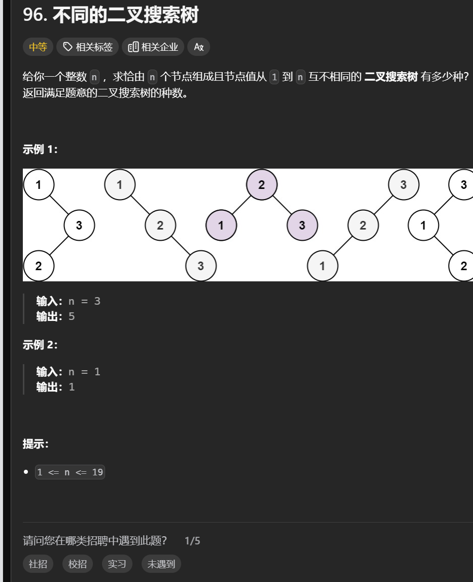 96. 不同的二叉搜索树c