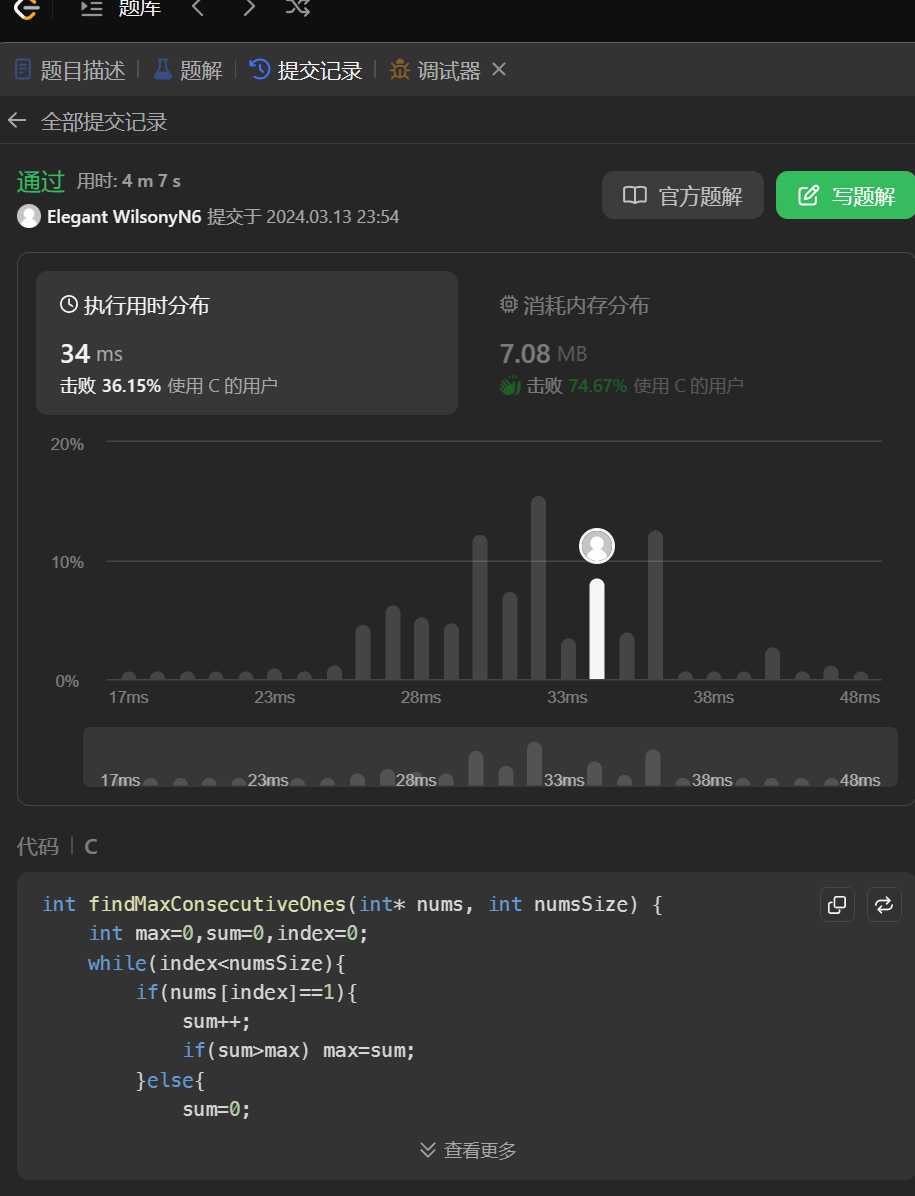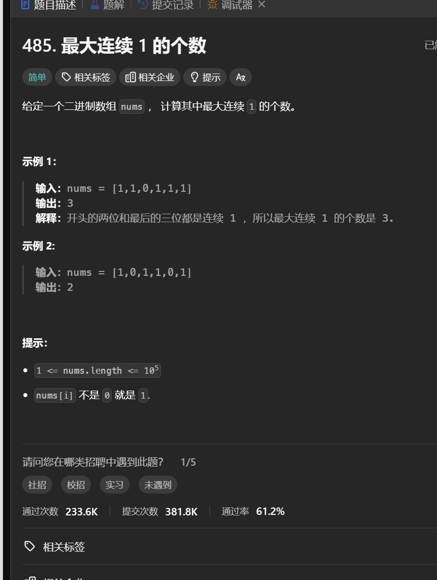 int findMaxConsecutiveOnes(int* nums, int numsSize) {