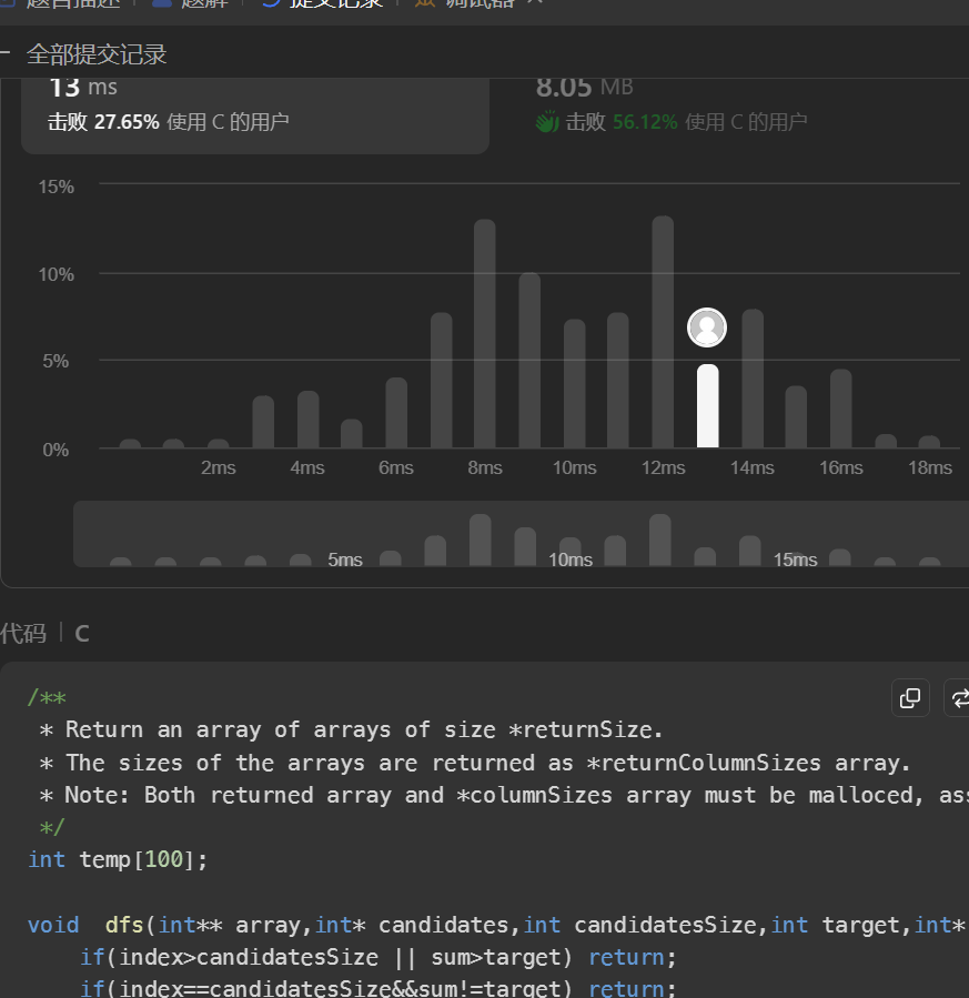 void dfs(int** array,int* candidates,int candidatesSize,int target,int* returnSize,int index,int sum,int count,int* column){