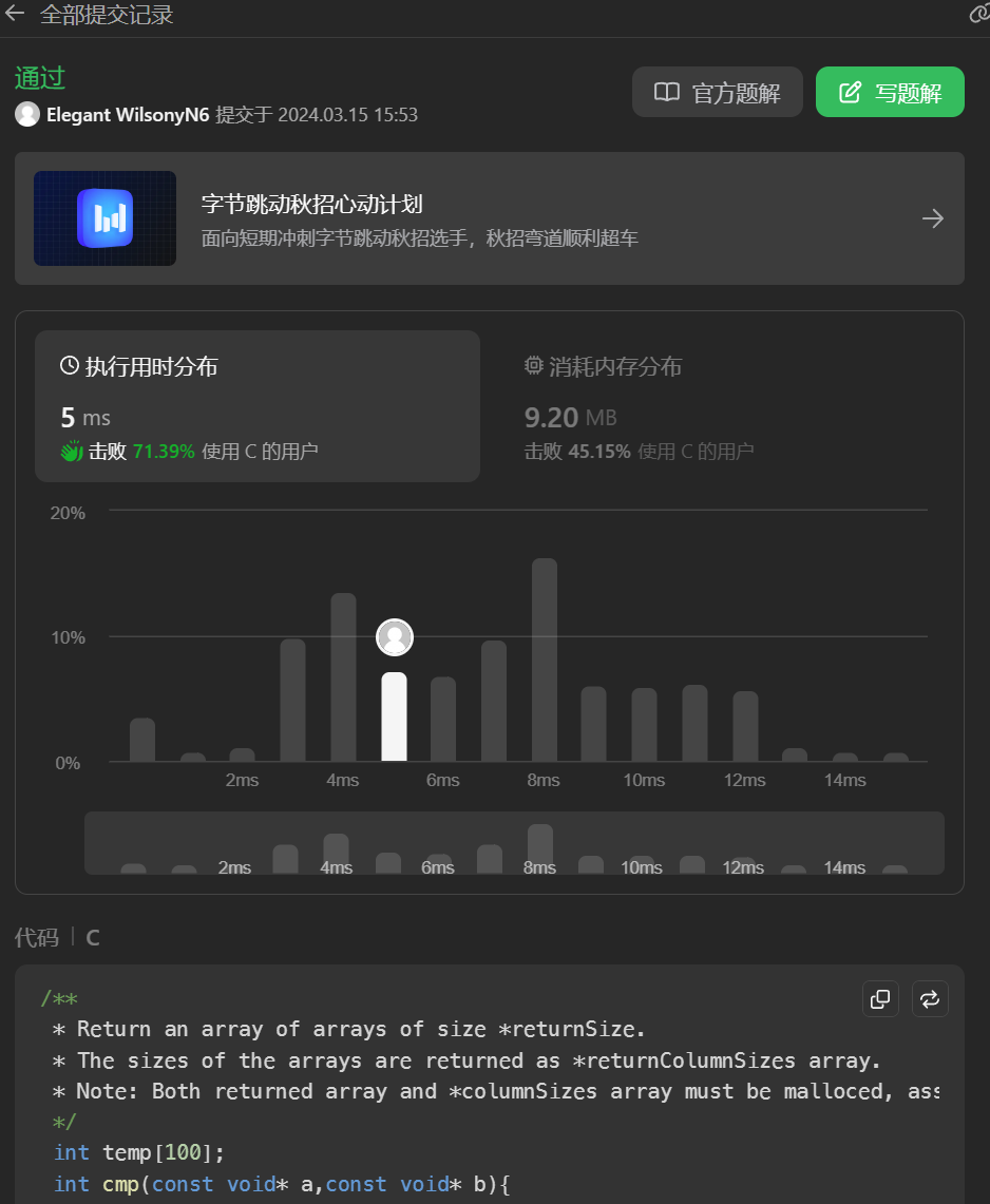 for(int i=0;i<count;i++) array[*returnSize][i]=temp[i];