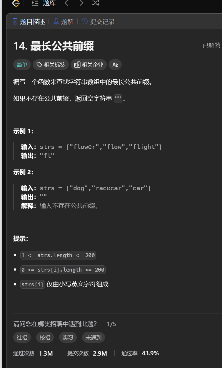14. 最长公共前缀c