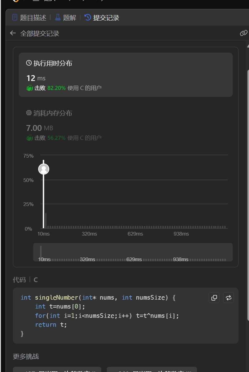 for(int i=1;i<numsSize;i++) t=t^nums[i];
