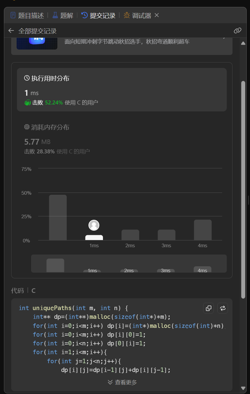 int** dp=(int**)malloc(sizeof(int*)*m);