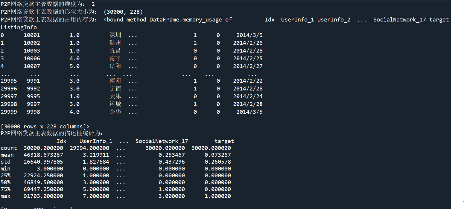 二、读取并查看P2P网络贷款数据主表的基本信息(1题10分,共10分)