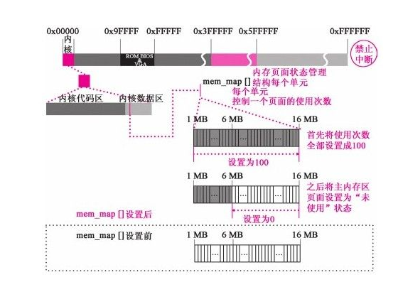 在Linux 0.11中,对1MB以上所有物理内存划分成一个个页面,并使用一个页面映射字节数组mem_map[]来管理所有这些页面。