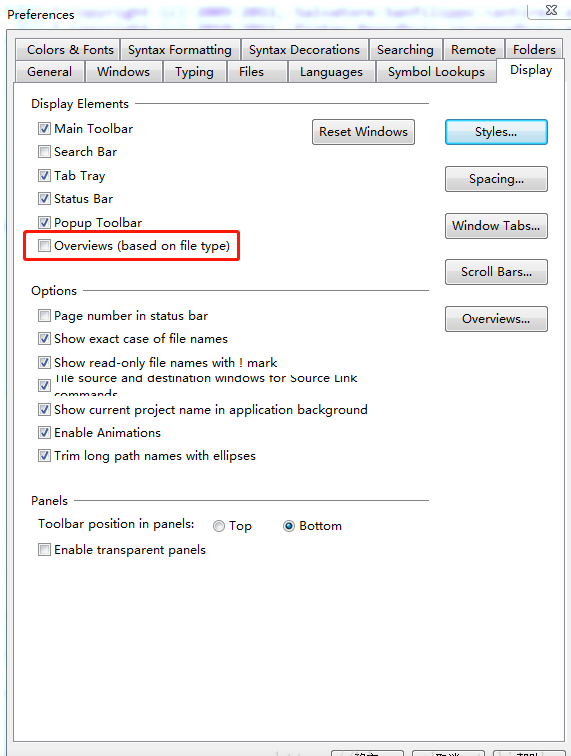 点击"Options"->"Preferences",打开"Preferences"窗口,选择"Display"选项卡,在"Display"选项卡中,勾选/去勾选"Overviews (based on file type)"选项,即可显示/隐藏Overviews,如下图: