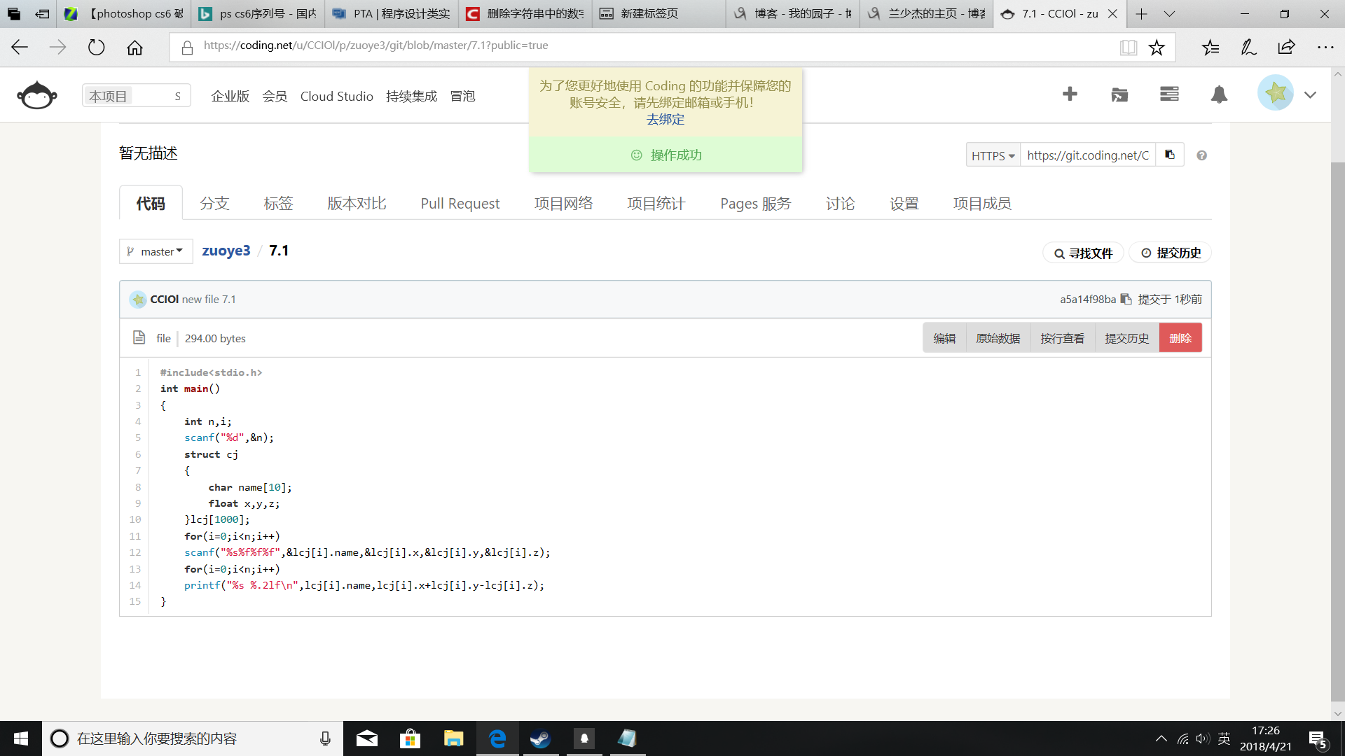 git地址:https://git.coding.net/CCIOl/zuoye.git
