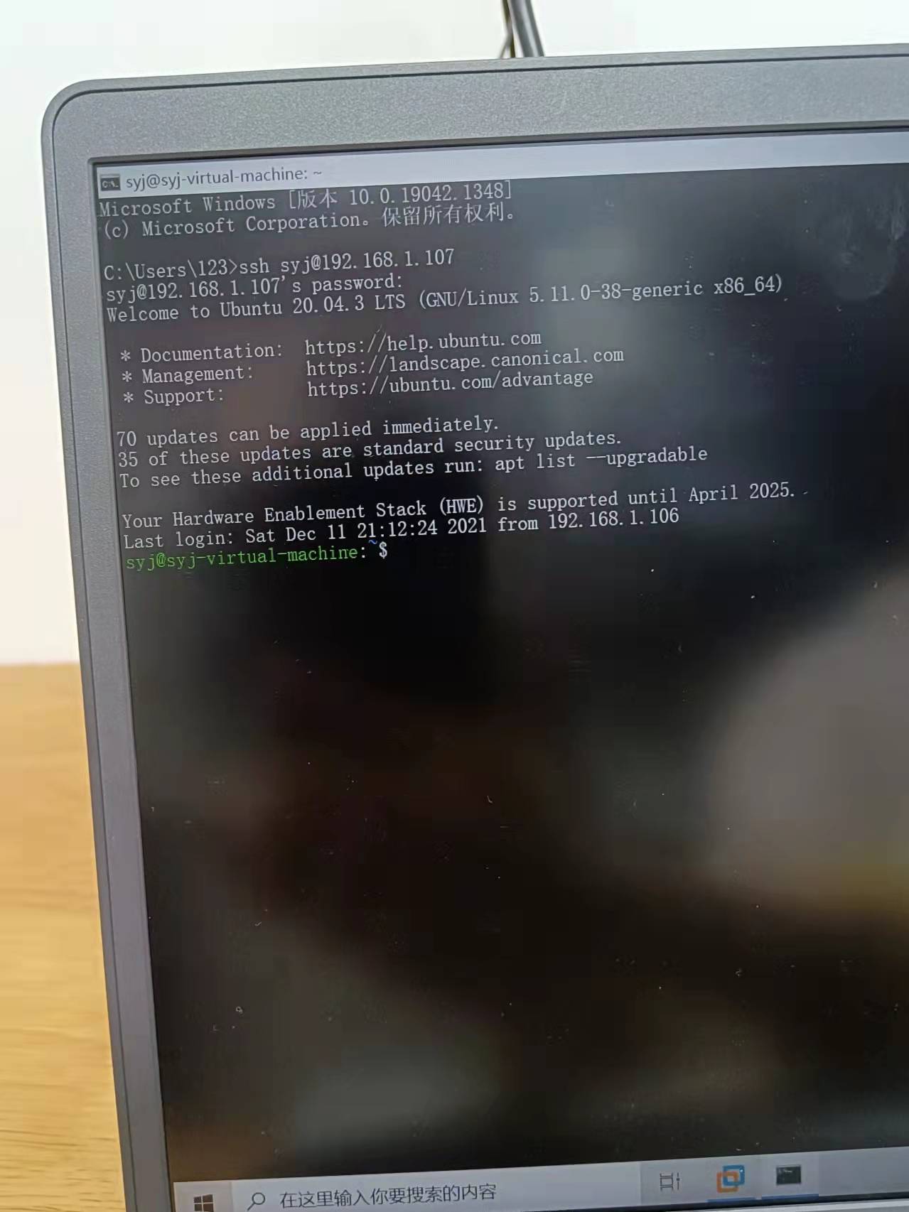 连接了我自己的虚拟机和史雨洁的虚拟机