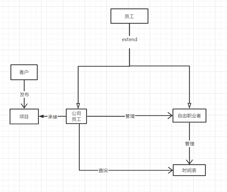 5.公司员工可以查询客户项目、查看自由职业者个人信息、查看客户信息