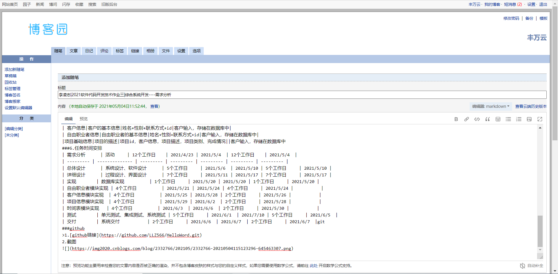 | 需求分析 | 活动 | 12个工作日 | 2021/4/23 | 2021/5/4 | 12个工作日 | 2021/5/4 |