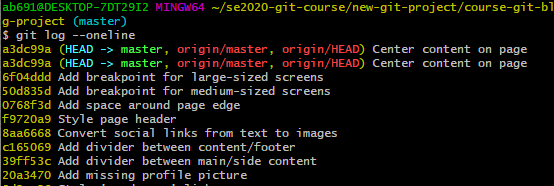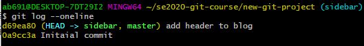 cd到course-git-blog-project的项目中,输入git log命令。