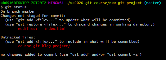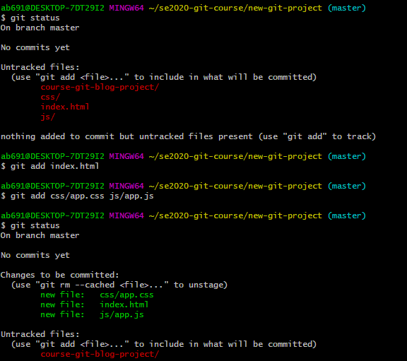 创建一个叫做 se2020-git-course的目录,在该目录中,创建另一个目录,叫做 new-git-project,使用 cd 命令移到 new-git-project 目录下。