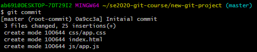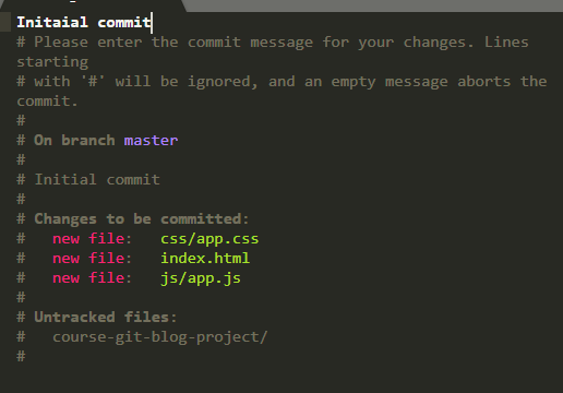 使用git commit 命令进入编辑器,在首行输入Initaial commit使commit提交。