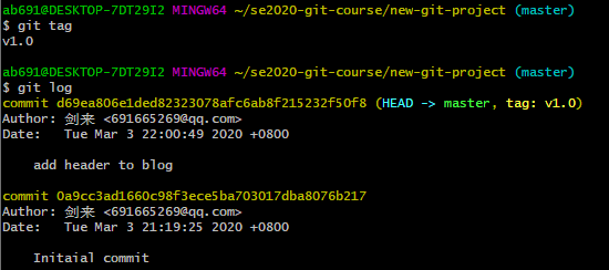 输入git tag可观察到此时的tag