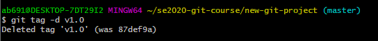 输入git tag -d v1.0来删除标签