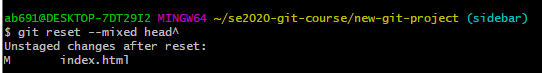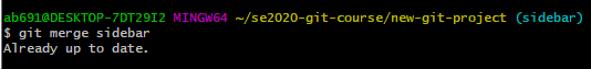 确保位于master分支上 用git merge sidebar就可以将sidebar合并到master上。