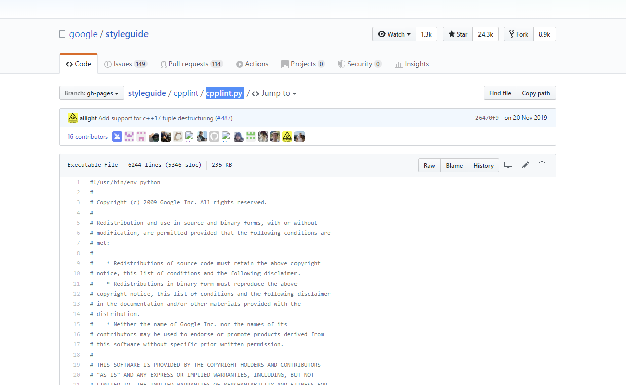 观察所审查的项目,其使用c语言编写,故使用Google代码规范工具Cpplint来对其进行代码审查。