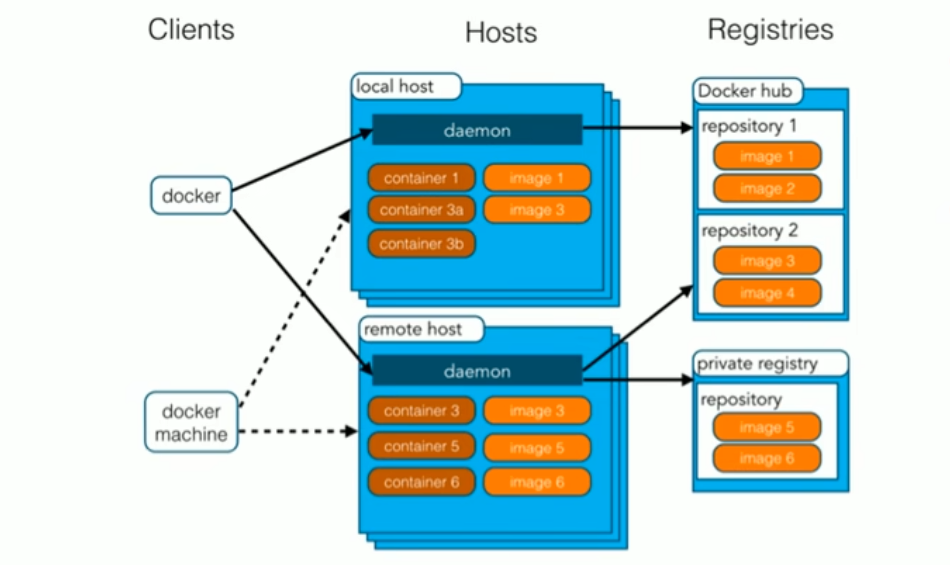 - 容器Container:镜像是静态的定义,容器是镜像运行时的实体。容器可以被创建,启动,停止,删除,暂停等。