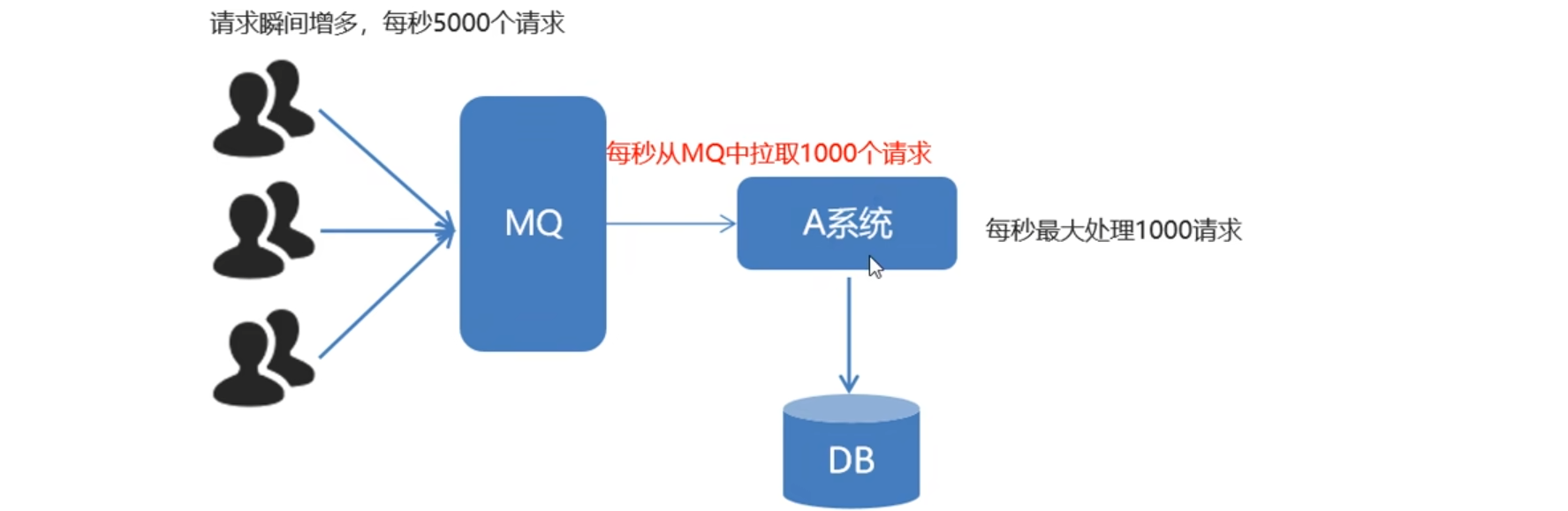 - 应用解耦:提高系统容错性和可维护性(系统的耦合性越高,容错性就越低,可维护性就越低)