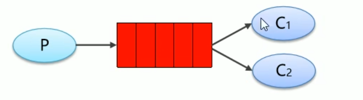 - 一个生产者、多个消费者(竞争关系),不需要设置交换机 (使用默认的交换机)。